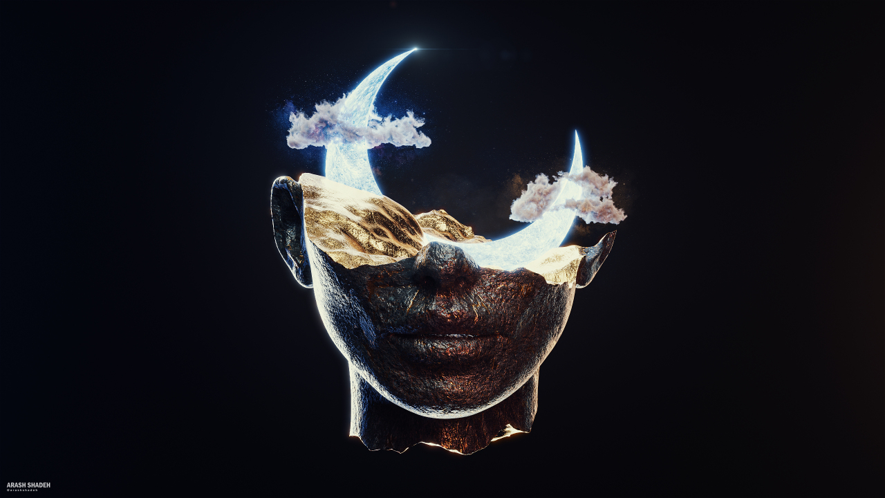 图片、月亮、AI艺术、云、石头、黄金、空间、阿拉什沙德
