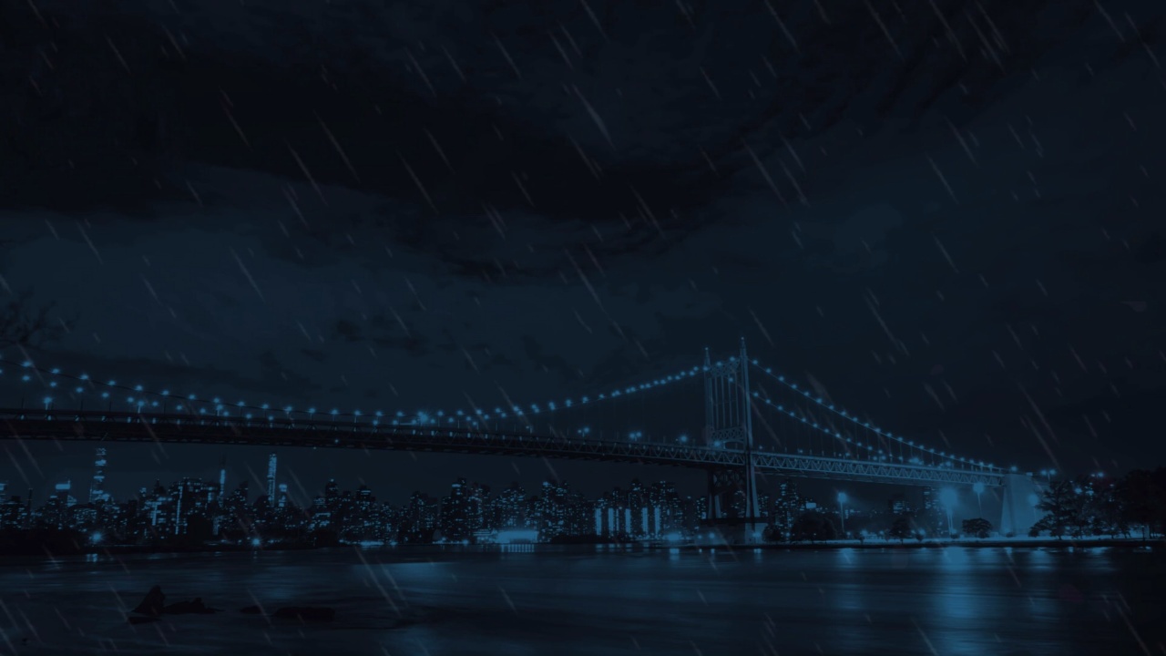 雨夜下的蓝色桥梁