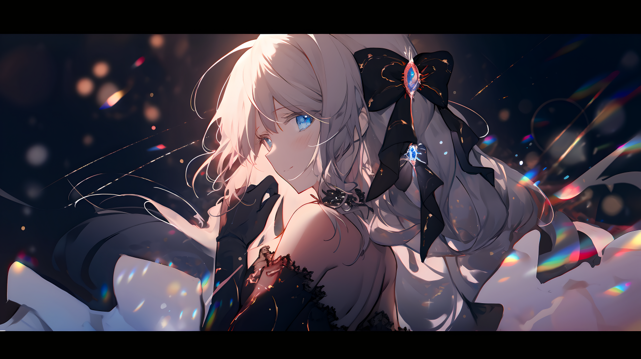 白发、长发、艺术、黑色、连衣裙、动漫、女孩