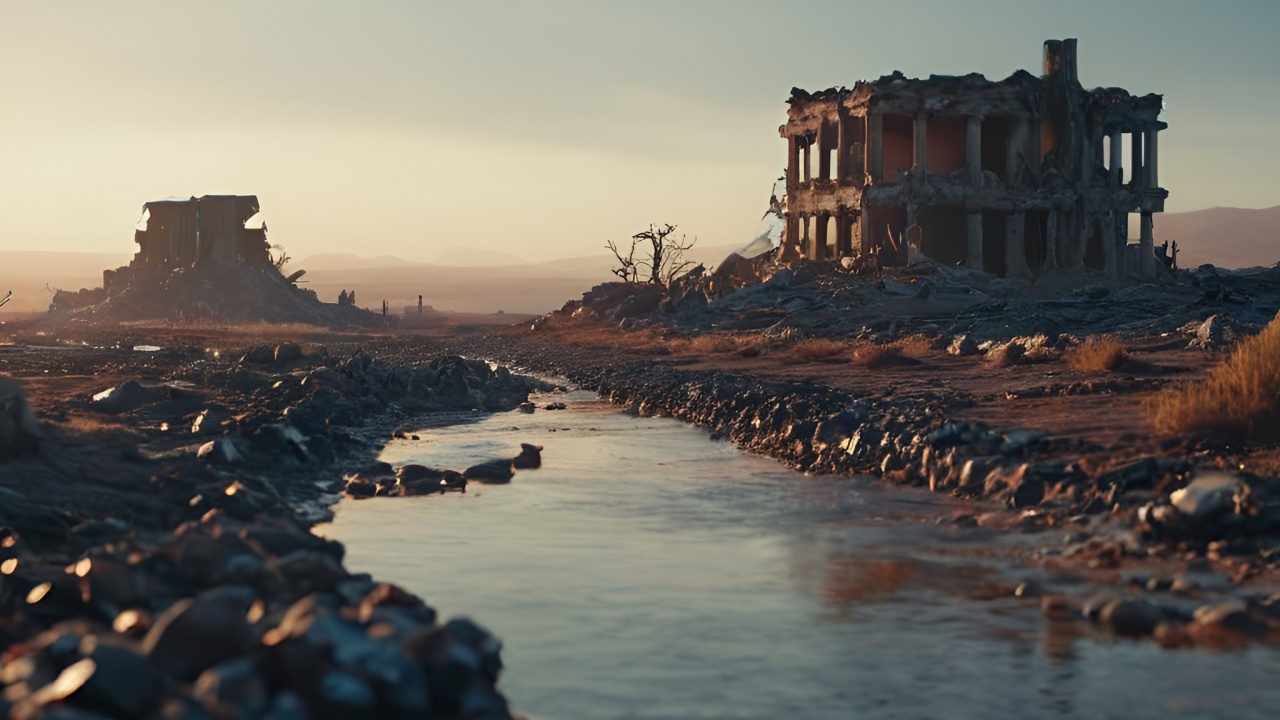 废墟中的希望:河流与建筑的交响曲