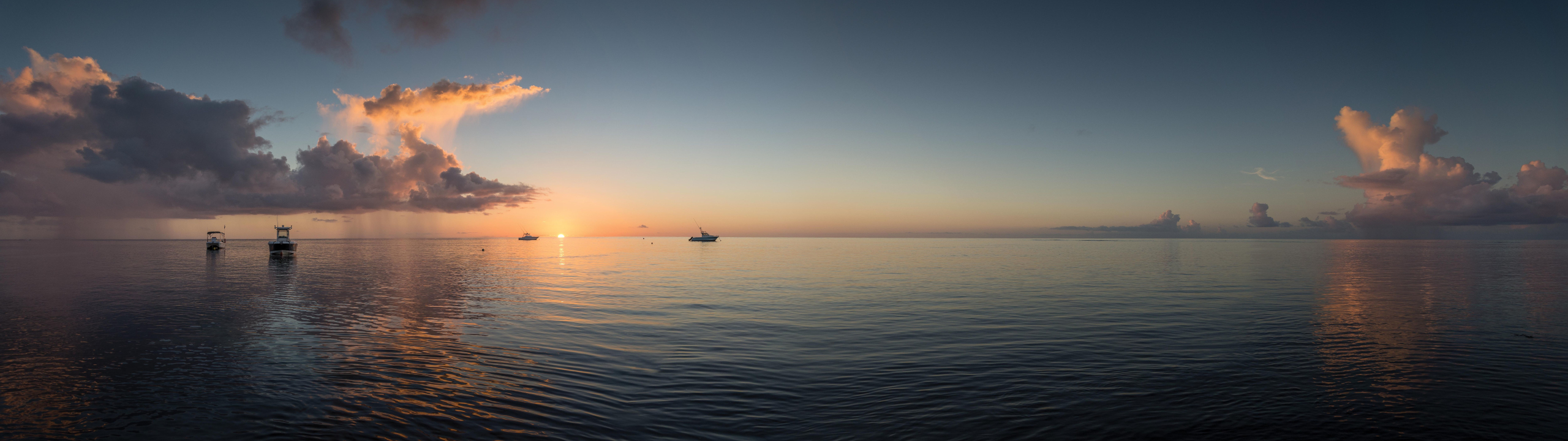 景观、海、地平线、日落、云、自然、船、全景