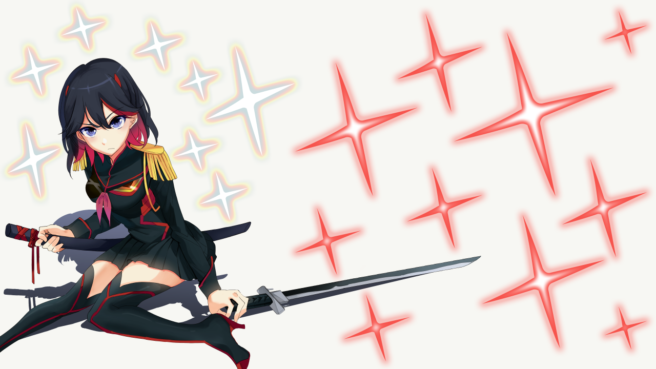 多色头发、蓝眼睛、动漫女孩、黑色头发、垫肩、明星、简单的背景、白色背景、校服