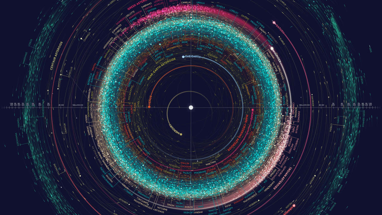 太阳系行星和小行星轨道信息图