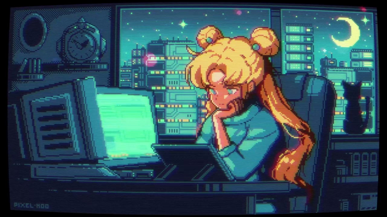 可爱的、粉色、合成波、氖、动漫女孩、二次元