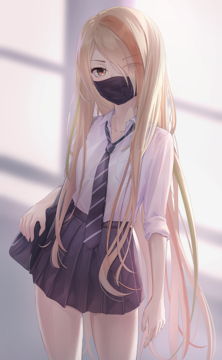 金发、动漫、动漫女孩、AI艺术、插图、面具