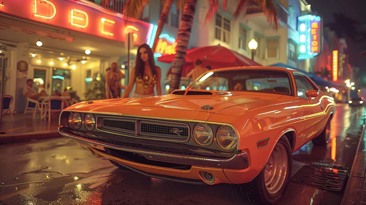 女人、人工智能艺术、汽车、道奇、迈阿密、橙色