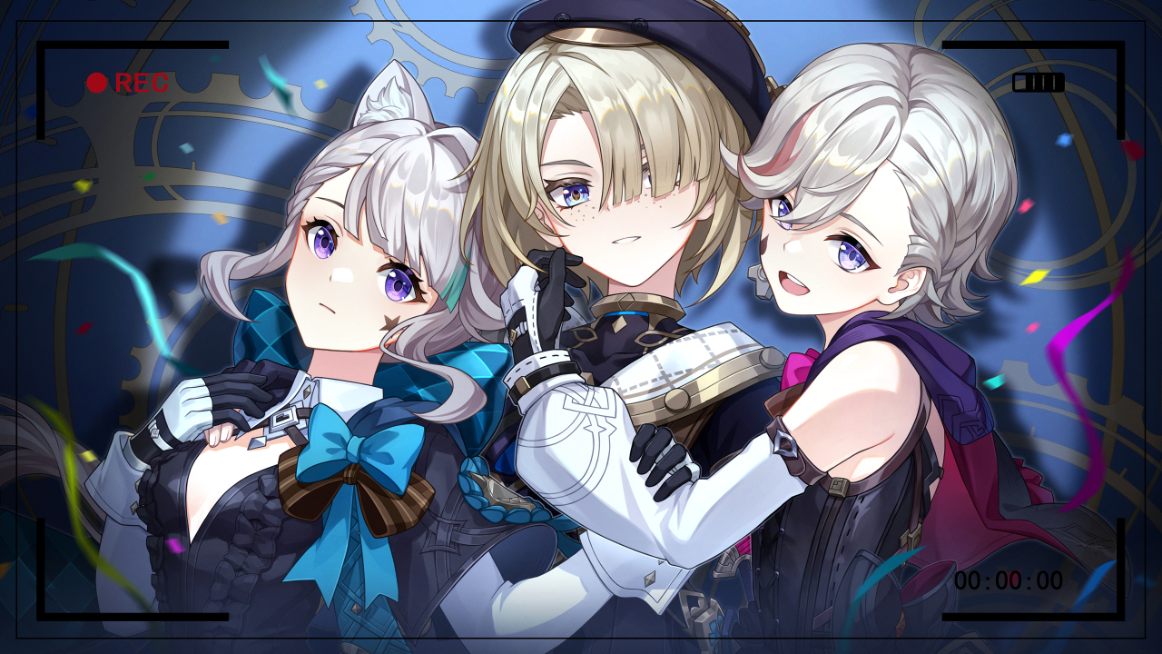 原神、雀斑、猫女、短发、动漫、动漫女孩、帽子、相机、猫耳朵、手套、领结