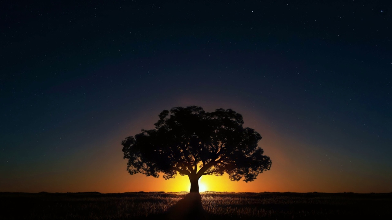 日落时的树木剪影