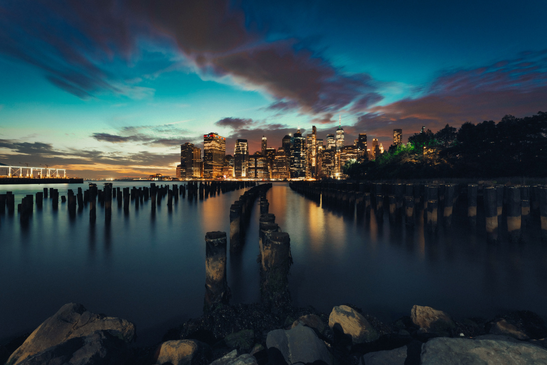 摄影、城市景观、日落、城市、长廊、摩天大楼、水、海、云、夕阳辉光、天空、岩石、城市灯光