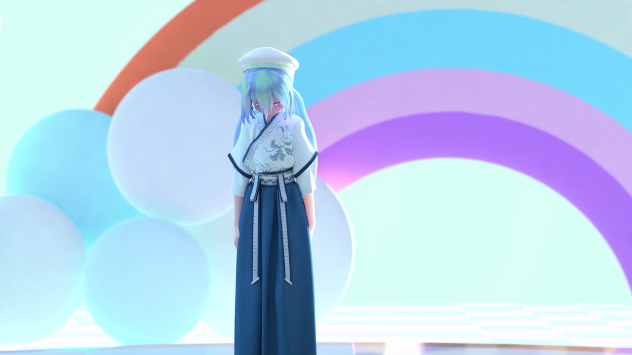 梦幻彩虹下的蓝发少女