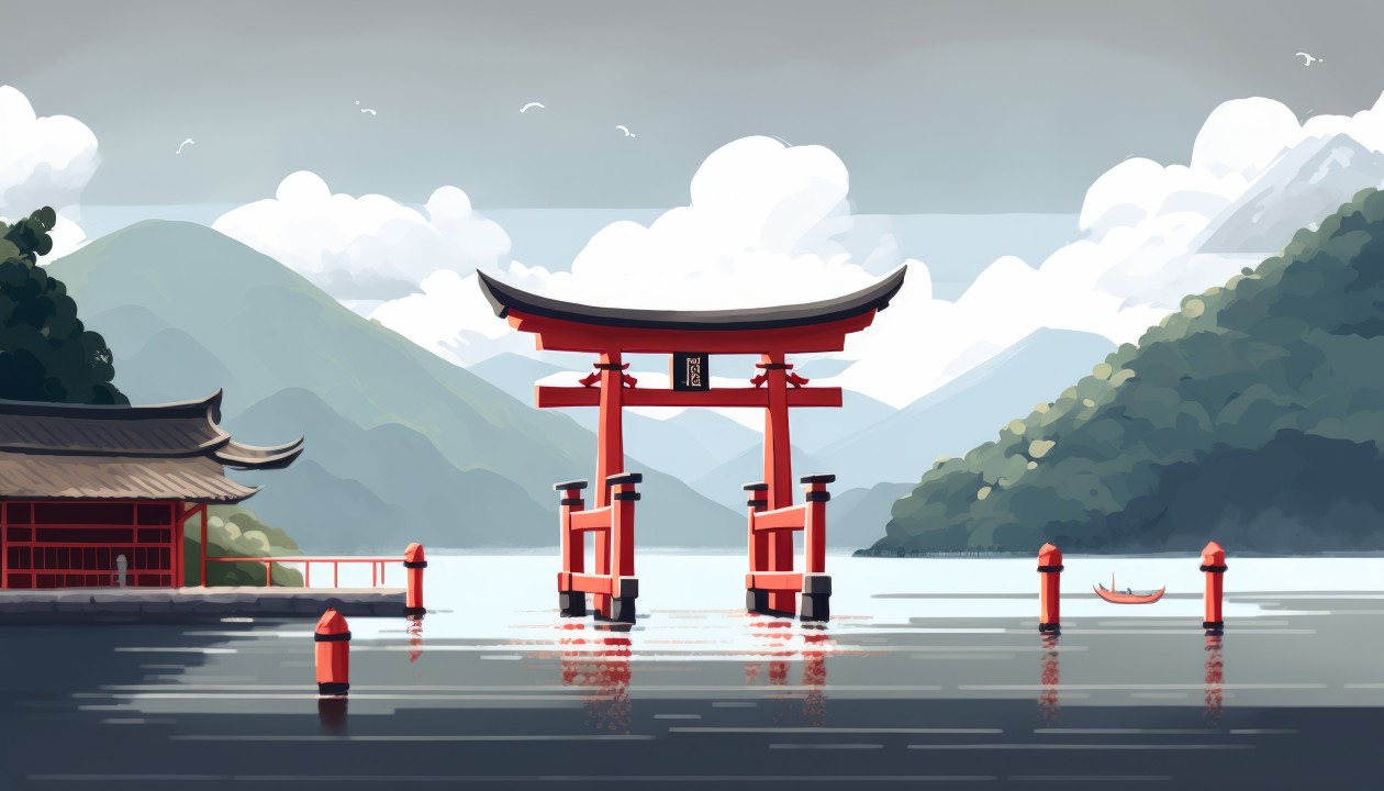 艺术、插图、湖泊、水、山、云、反射