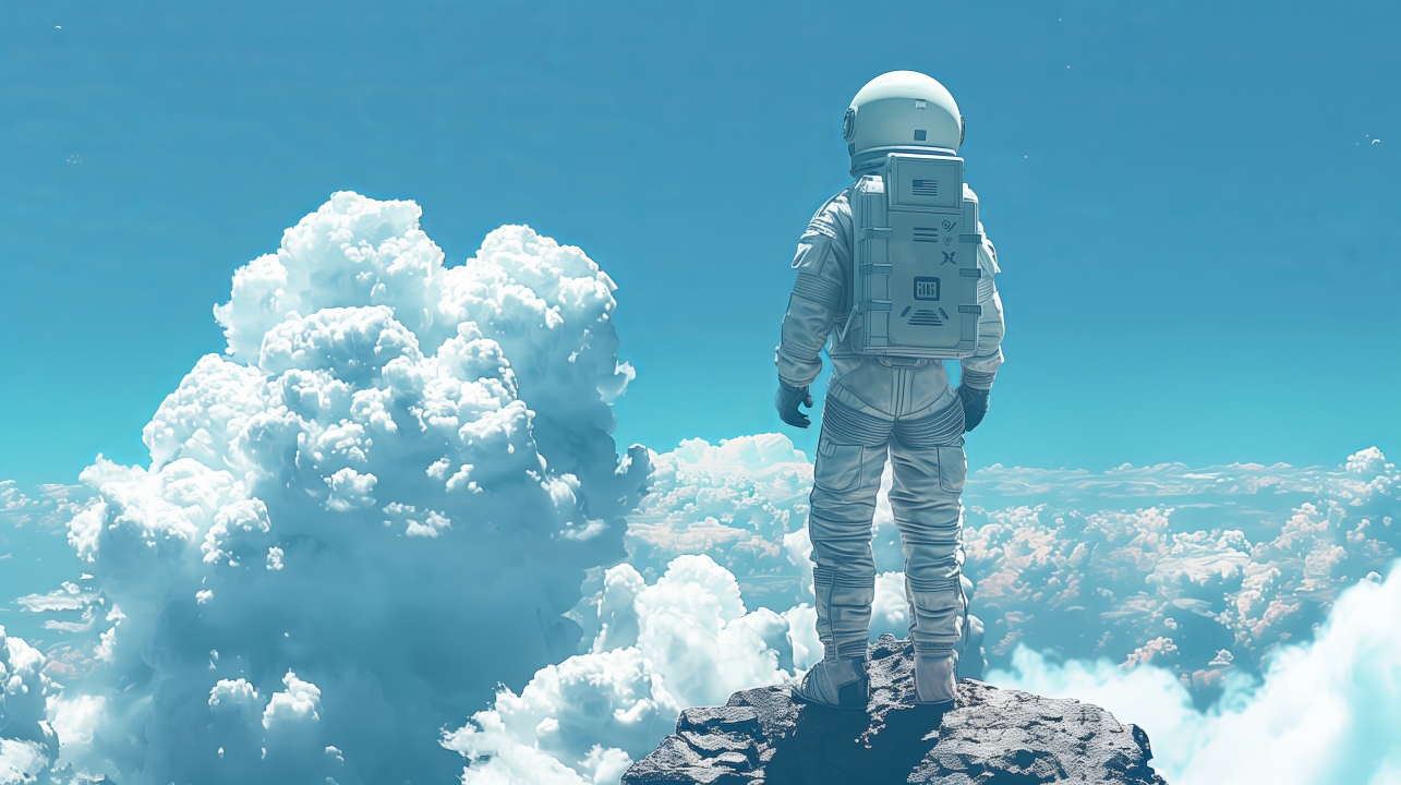 宇航员、人工智能艺术、云、蓝色、晴朗的天空、天空