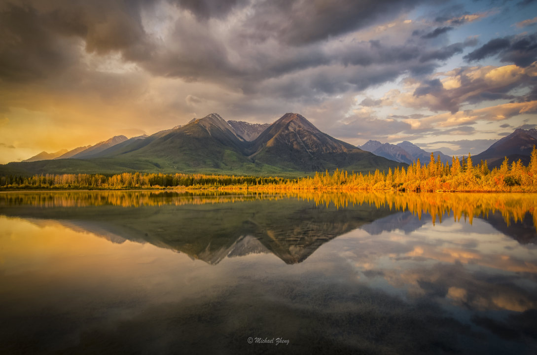 日出时分的山景与湖泊