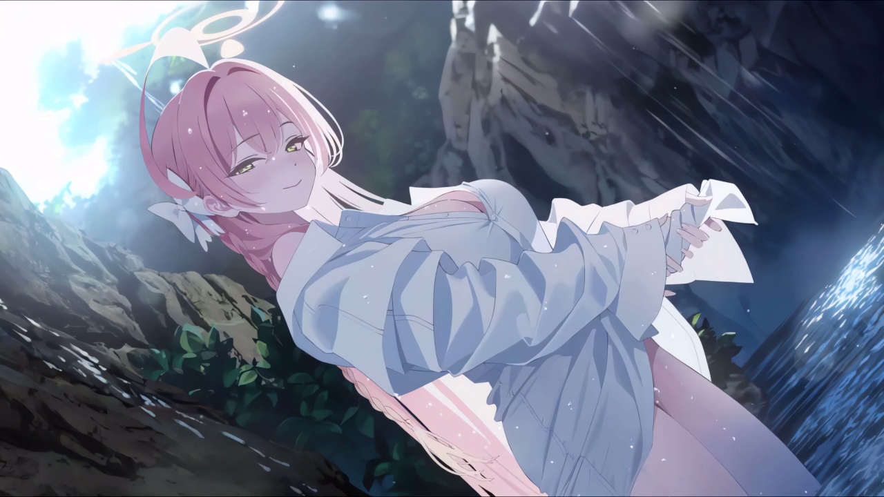 梦幻瀑布下的粉色精灵