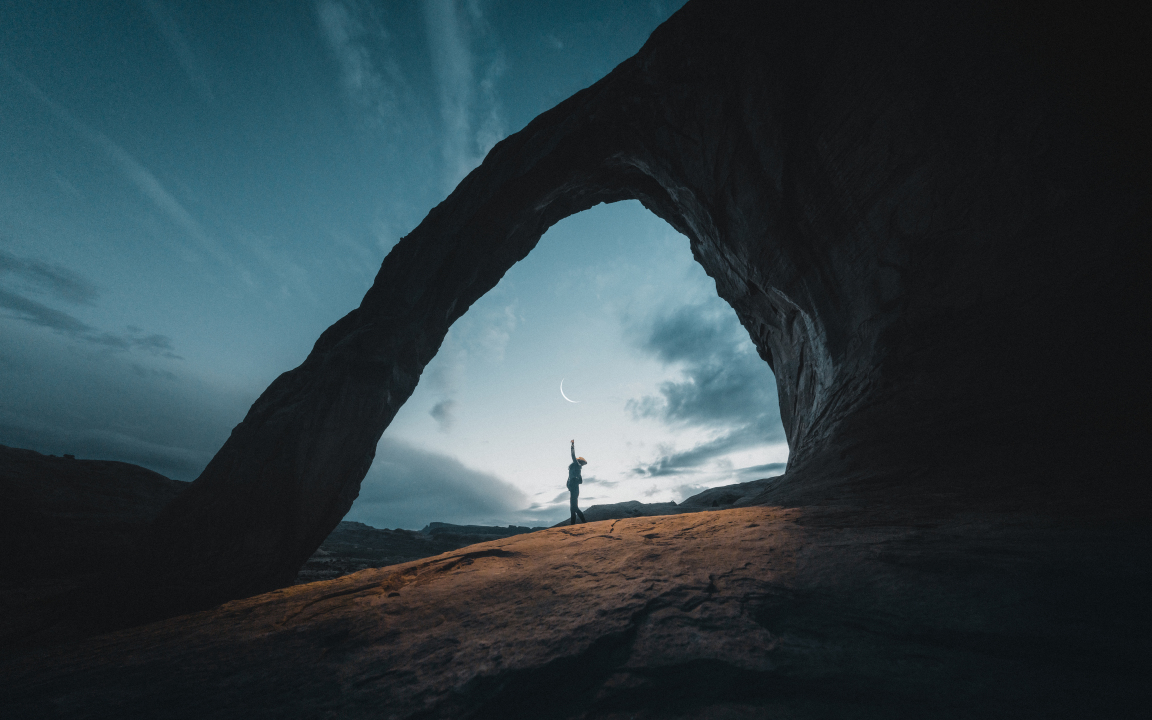 女性、风景、摄影、云、月亮、岩石、形成、自然