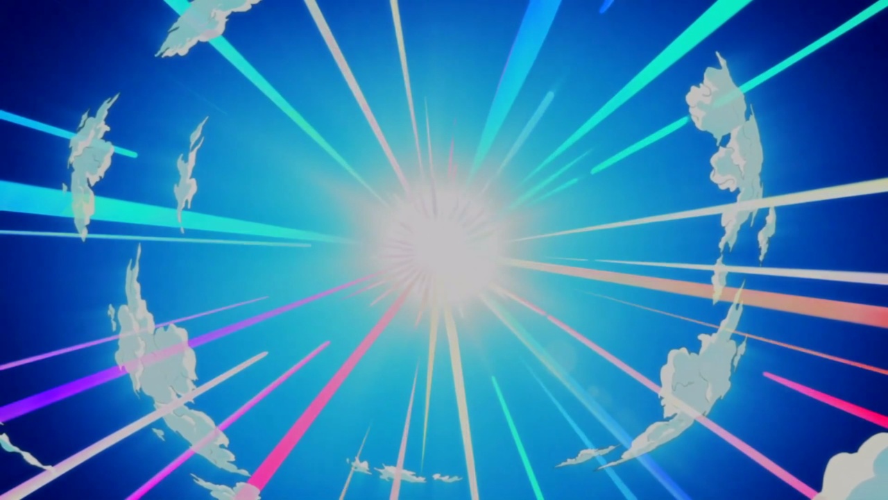 动漫中的金发女孩手持武器,背景是城市和国旗