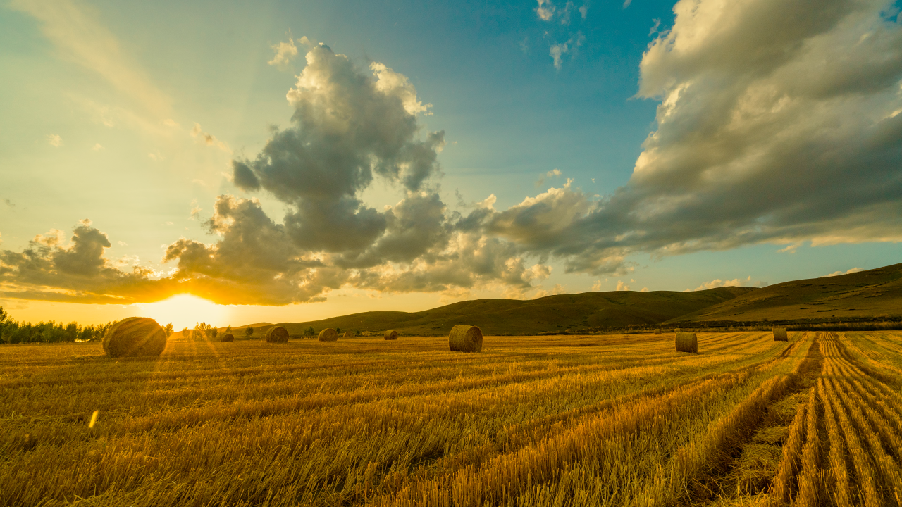 秋收时节的麦田与夕阳