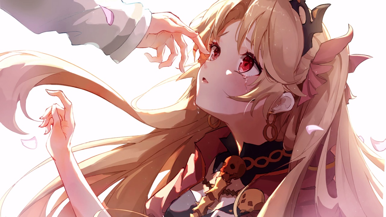 粉色头发、长发、红眼睛、决斗、动漫、花瓣
