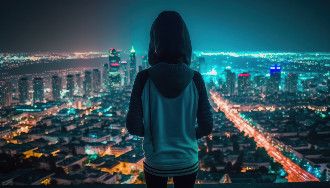 女性、艺术、城市、天际线、夜晚、城市灯光、青色、城市景观、引擎盖