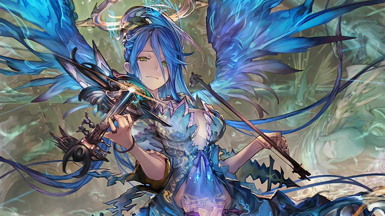 蓝发、动漫、乐器、翅膀、动漫女孩