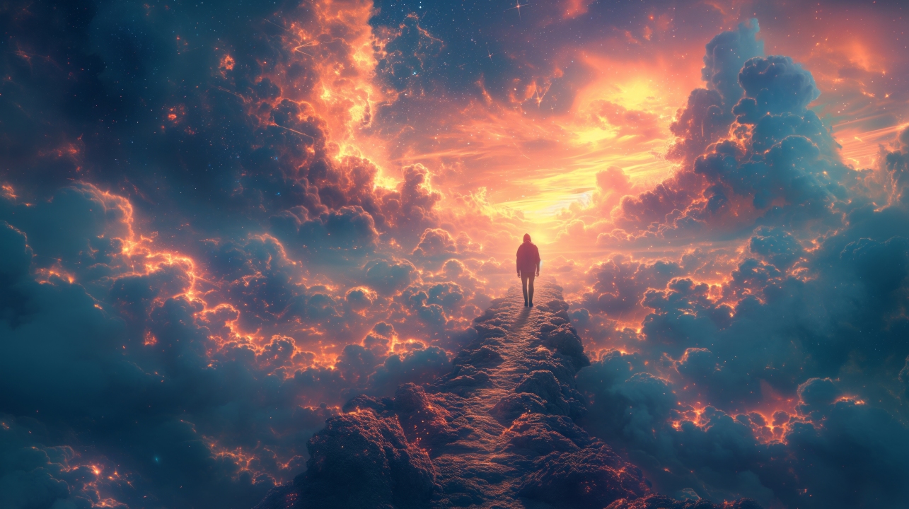 行走、人工智能艺术、插图、天堂和地狱、云、人