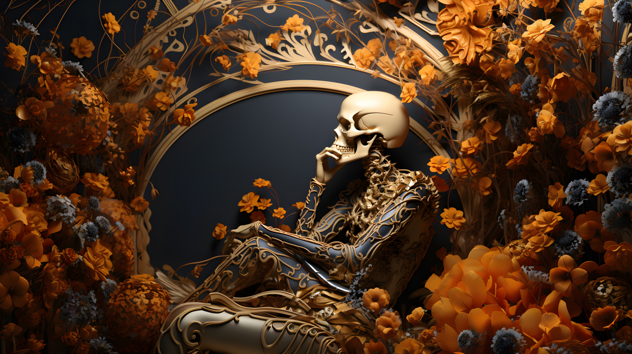 AI艺术、头骨、花朵、数字艺术、骨骼