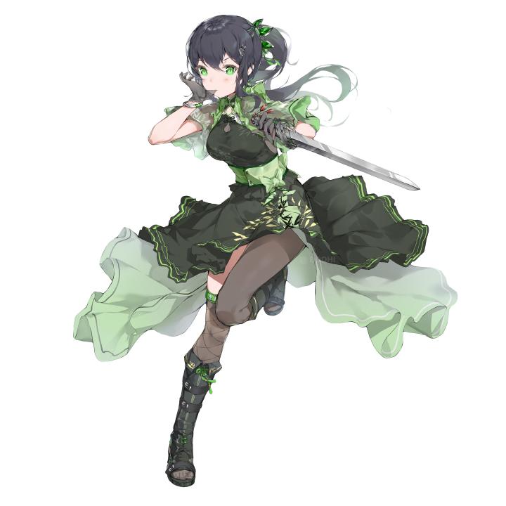 绿色、眼睛、动漫女孩、衣服、剑、武器、手套、简单