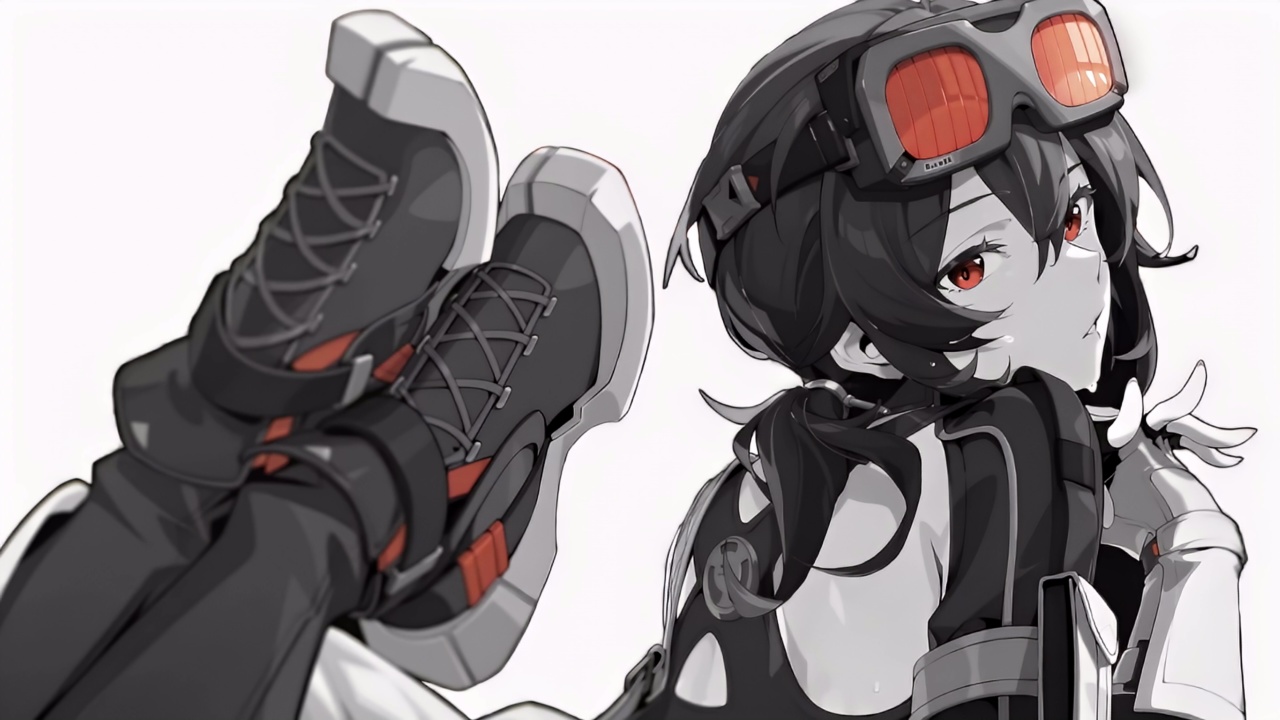 酷、可爱的、红色、黑白、动漫女孩、二次元