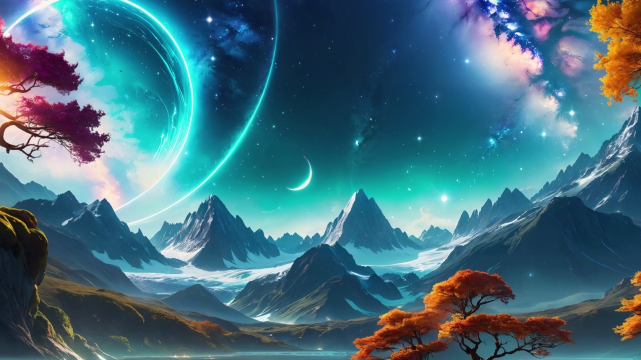 月亮、星星、山脉