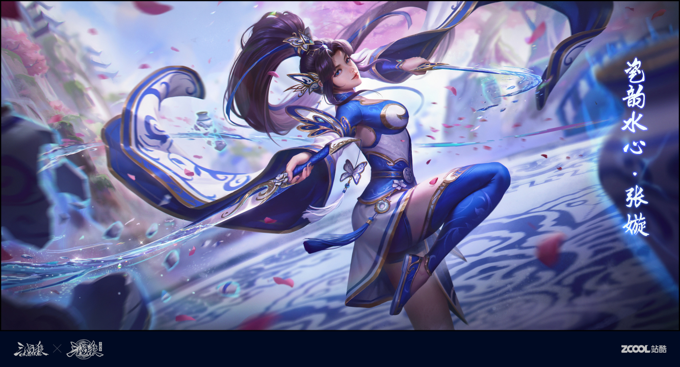 游戏、角色、马尾辫、长发、水、花瓣、天空、云、武器