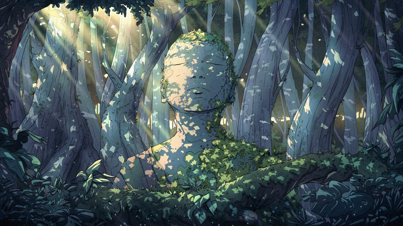 AI艺术、奇幻艺术、雕像、阳光、森林、树木、自然