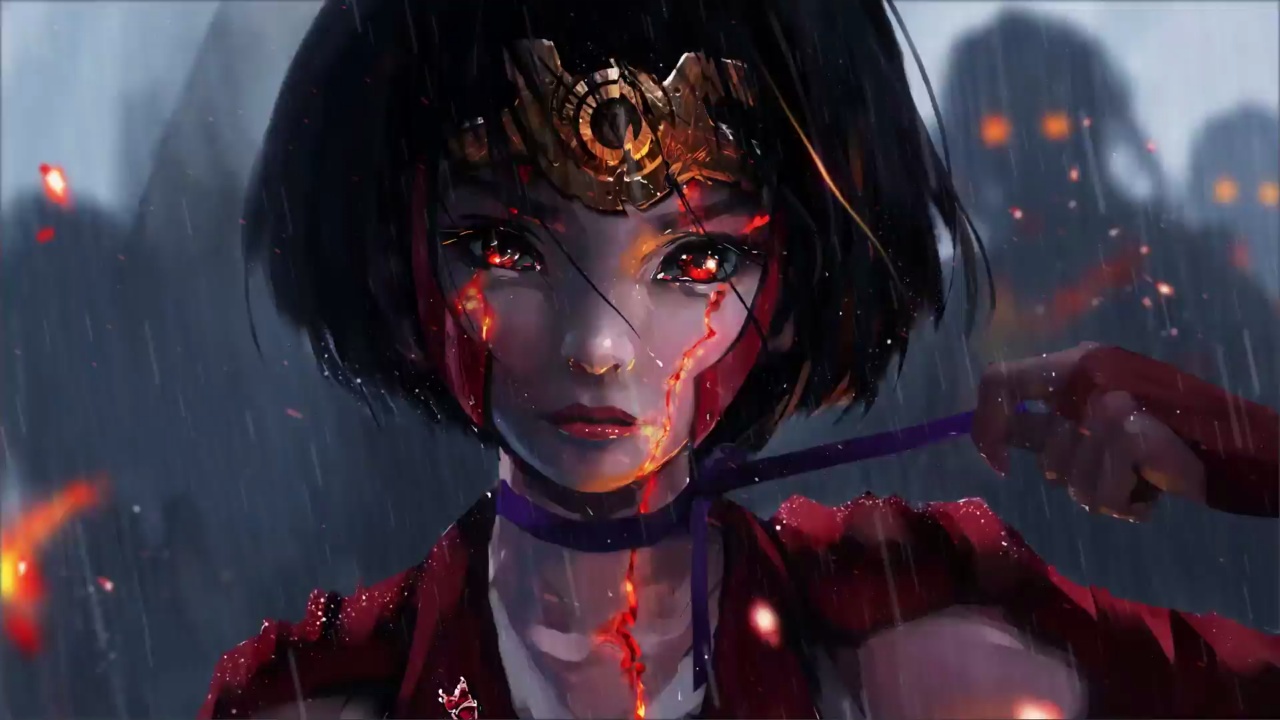 可爱的、粉色、红色、悲伤的、动漫女孩、二次元