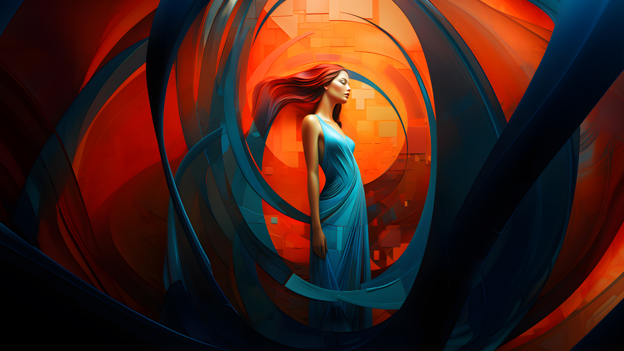 女性、闭眼、站立、艺术、AI艺术、连衣裙、极简主义、简单背景