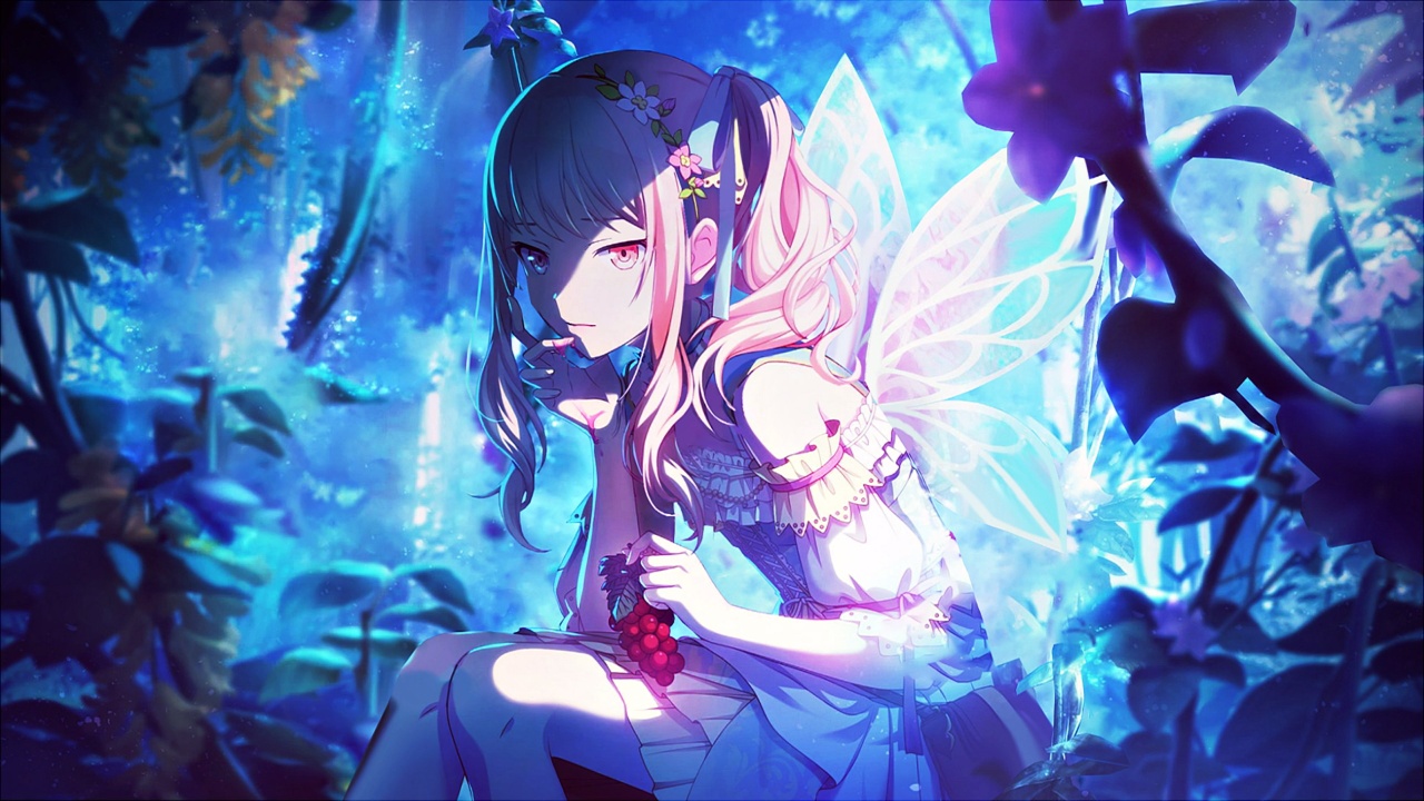 粉色、可爱的、蝴蝶、动漫女孩、二次元