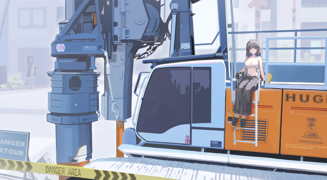 裸肩、大腿、头发、弯腰、刘海、长发、曲线、蓝眼睛、个人资料、微笑、金发、动漫、女孩、迷你裙、领带、手表、法式辫子、黑色丝袜、森林、河流
