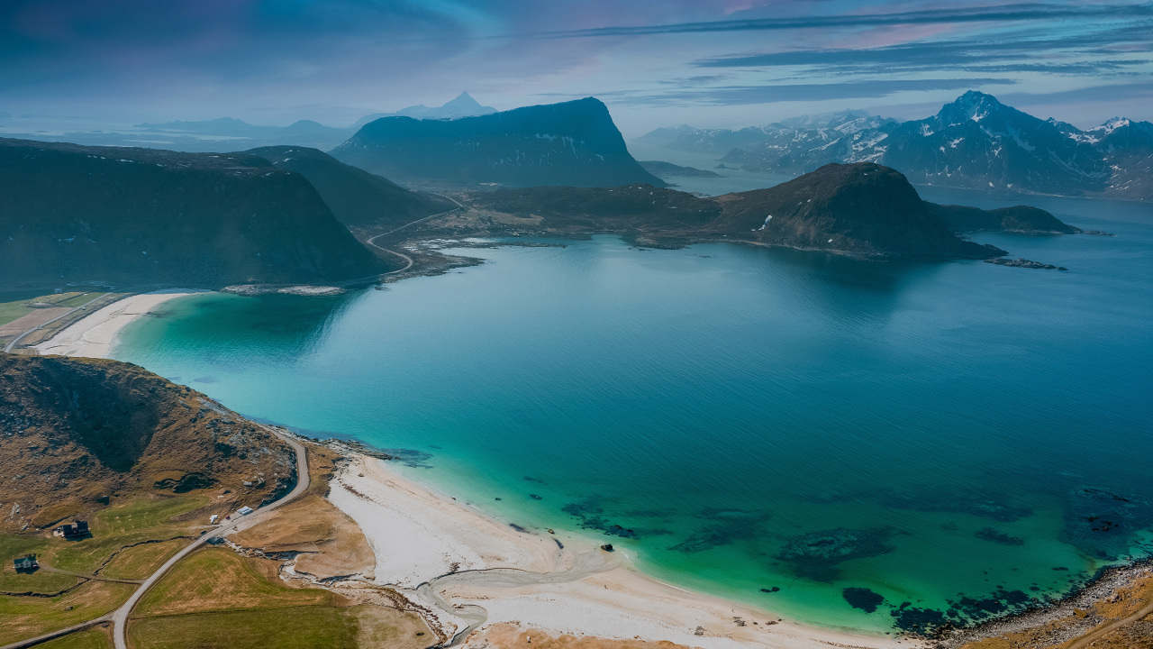 自然、风景、挪威、罗福滕、海洋、海湾、海滩、山脉、天空、水