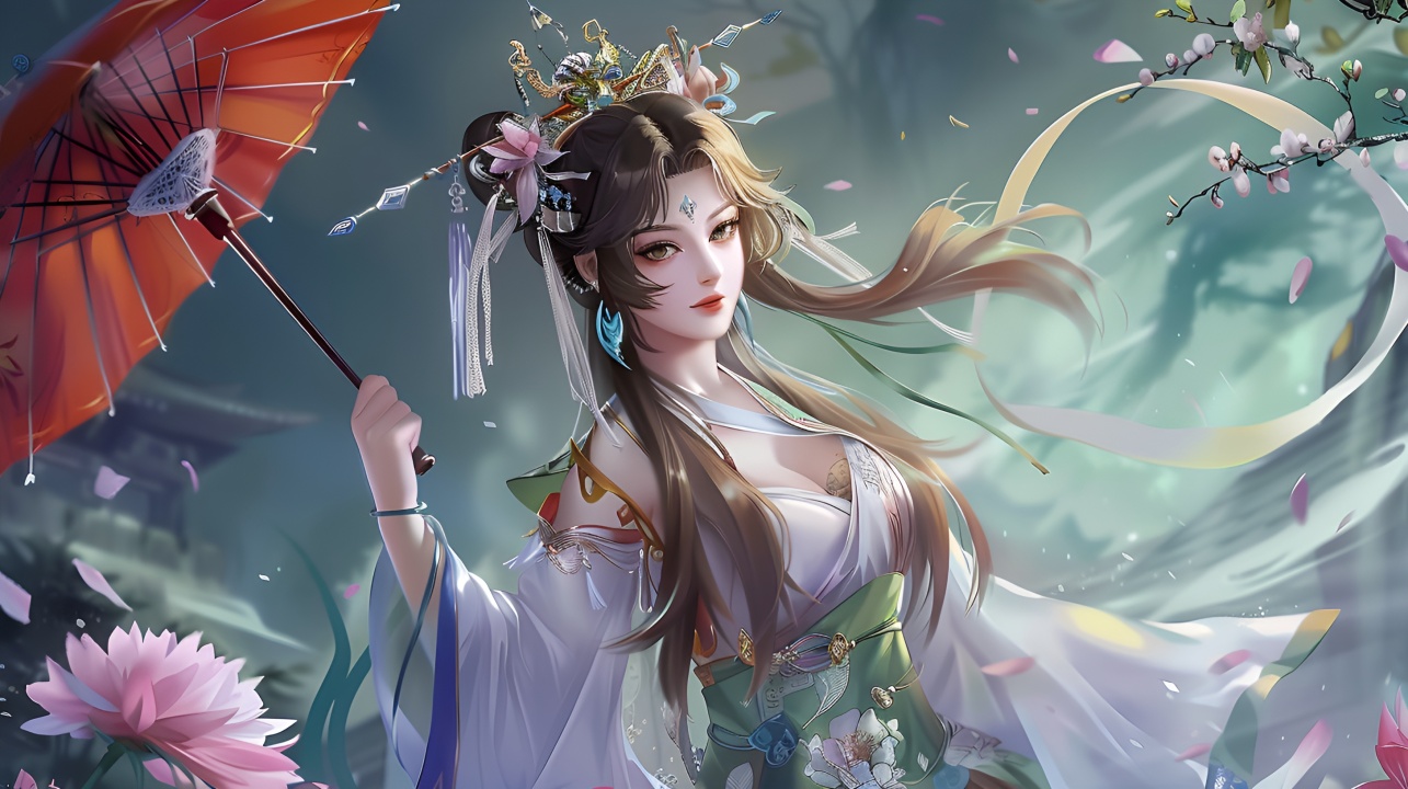 古风美人:荷花伞下的优雅
