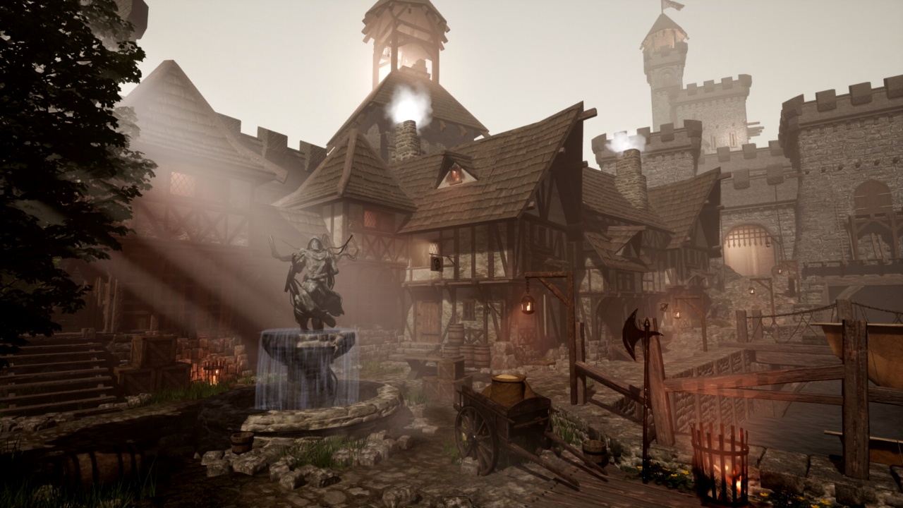 AI艺术、数字艺术、城市景观、街道、夜晚、中世纪、数字绘画