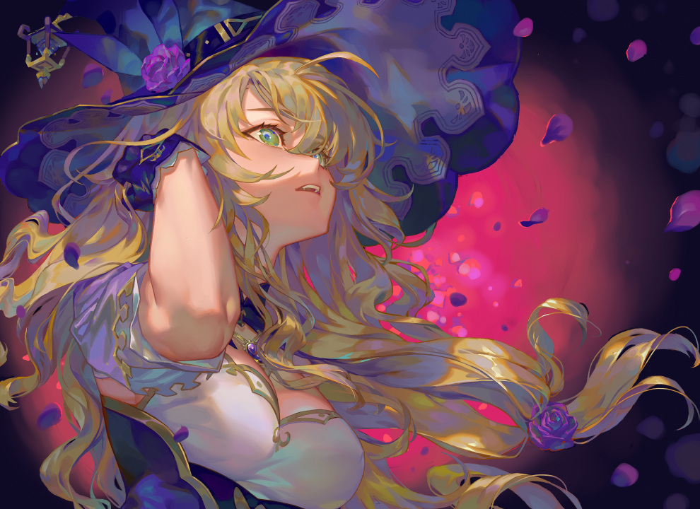丽莎、原神、动漫、女孩、花瓣、手套、帽子
