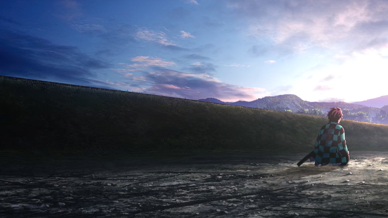 动漫男孩在傍晚的宁静时刻