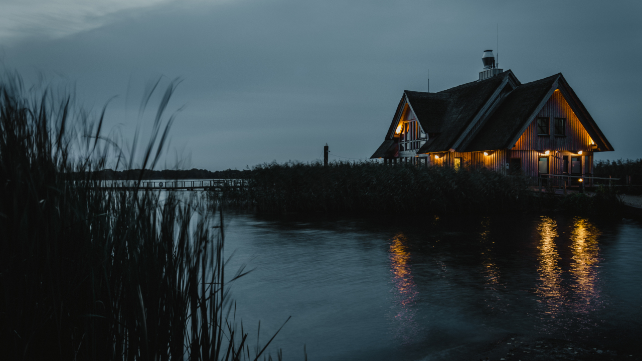 自然、云、植物、水、房屋、低光灯、木屋、黑暗、薄雾、芦苇