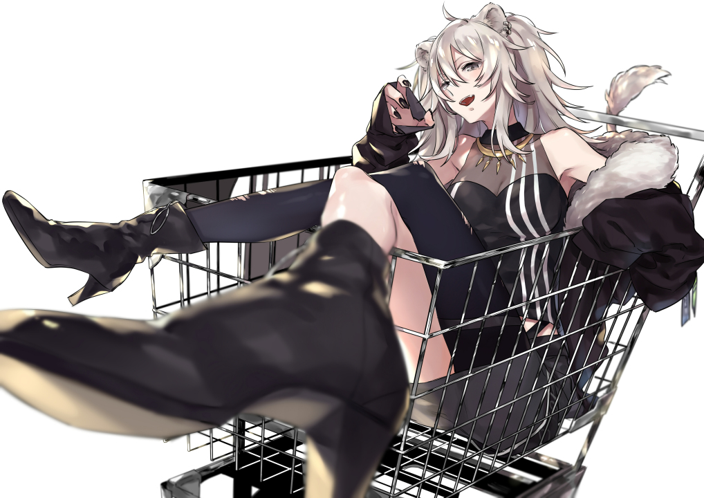 动漫女孩坐在购物车里