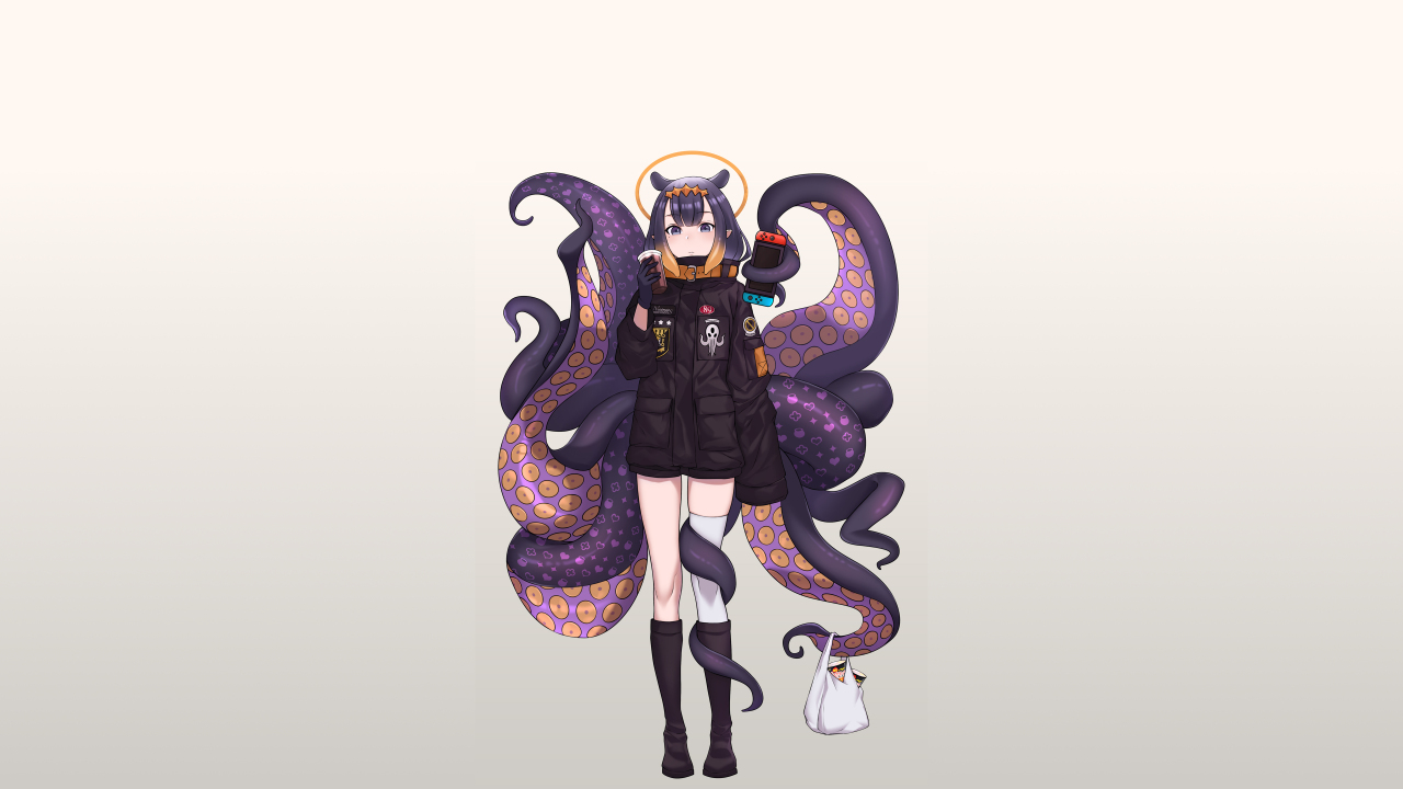 动漫、动漫女孩、全息、虚拟、简单背景、触手