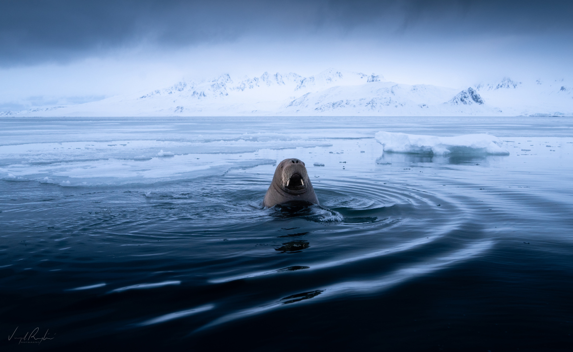 海象在冰天雪地中