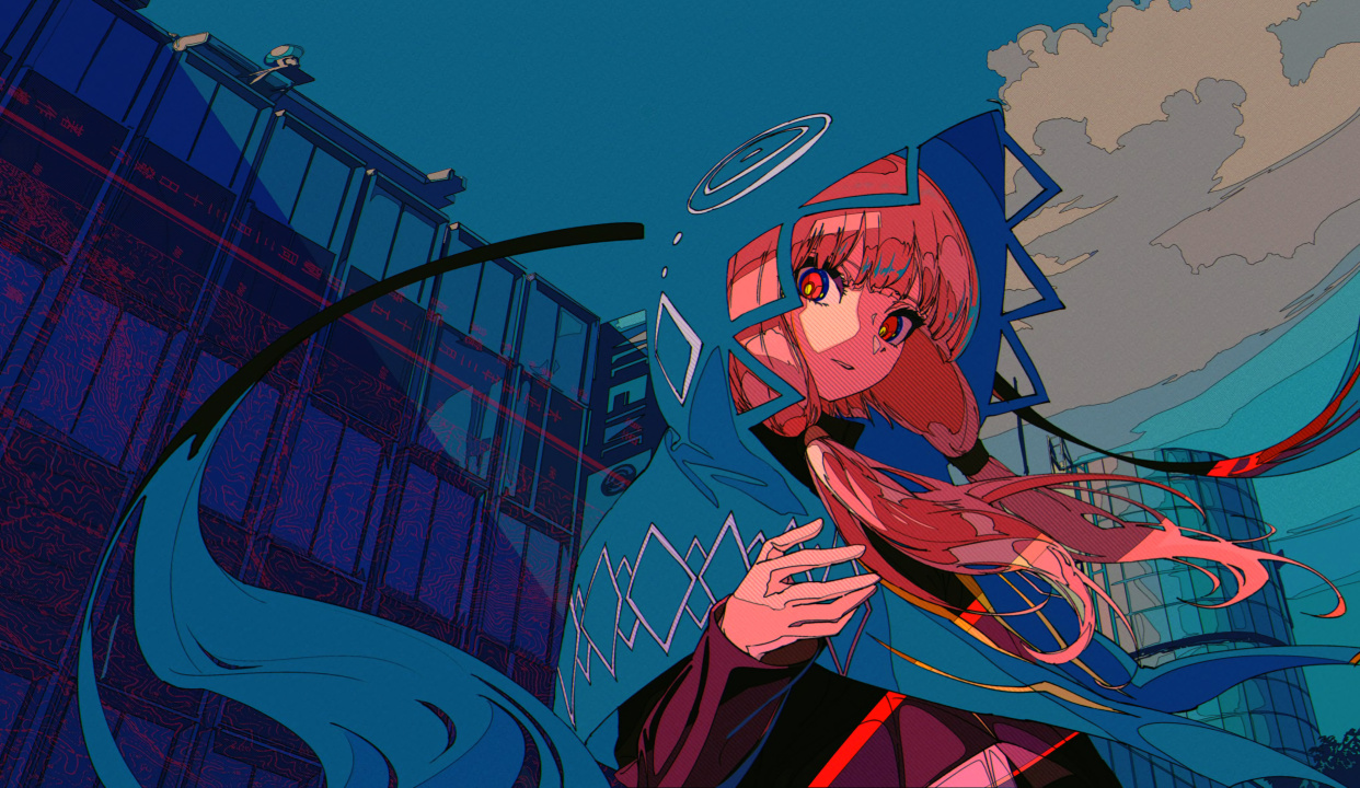 长发、动漫、动漫女孩、双尾、天空、云、建筑