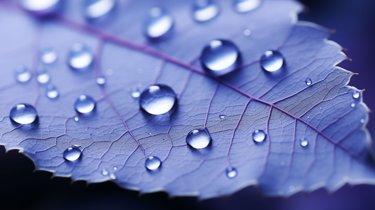 艺术、树叶、蓝色、水滴、AI艺术、清新、治愈、紫色