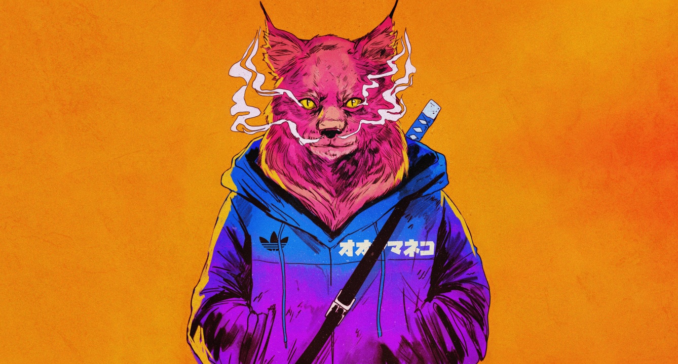 橙色背景、猫、动物、绘画、动画、抽象