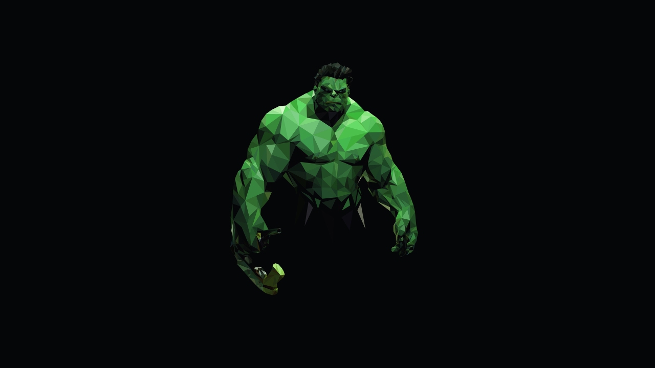 漫威漫画、黑色背景、绿巨人、多边形艺术