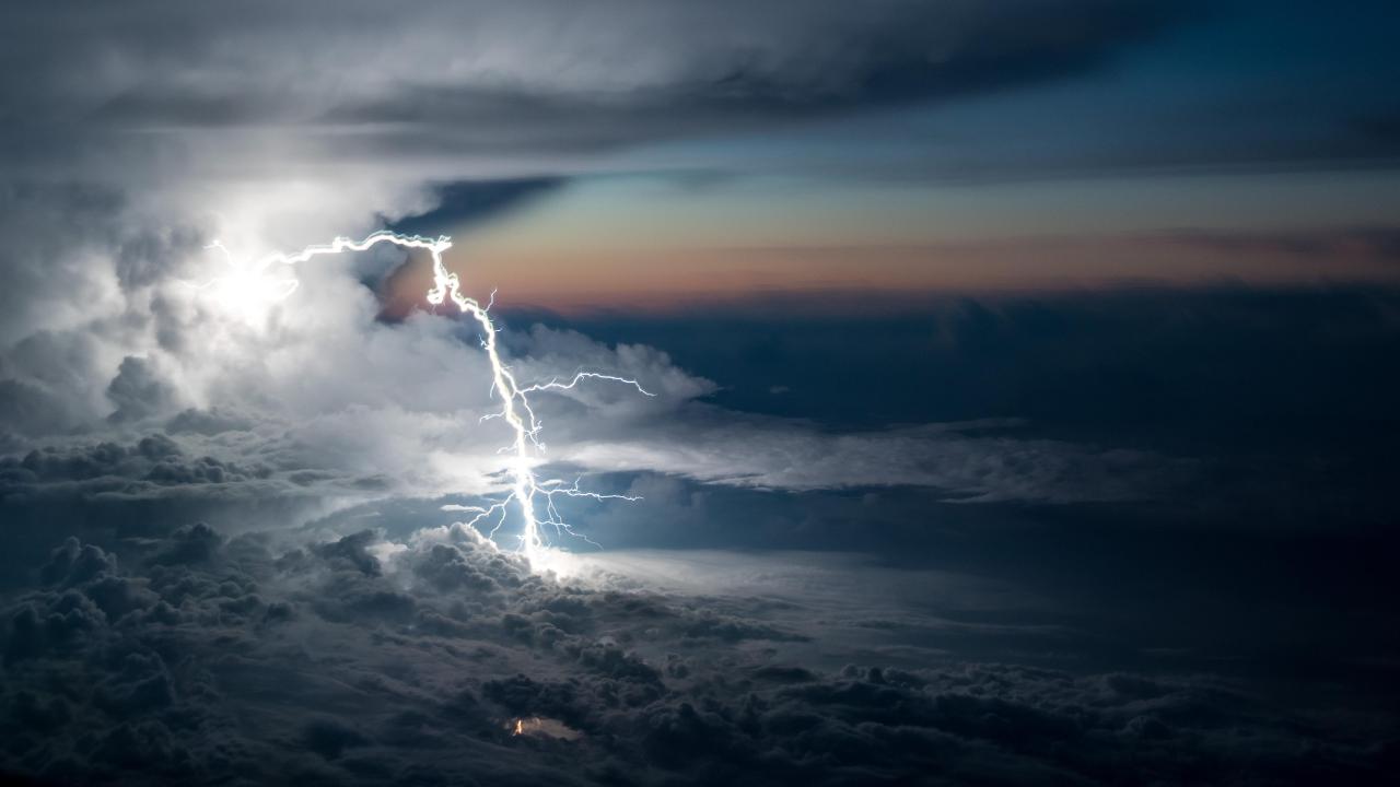 自然、风景、鸟瞰、云、天空、夜晚、闪电