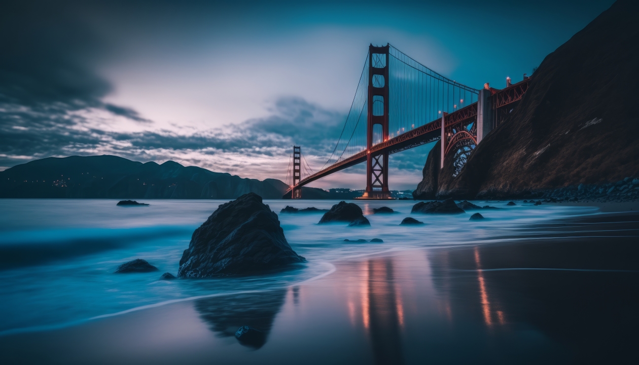 宁静的夜晚,金门大桥与海景